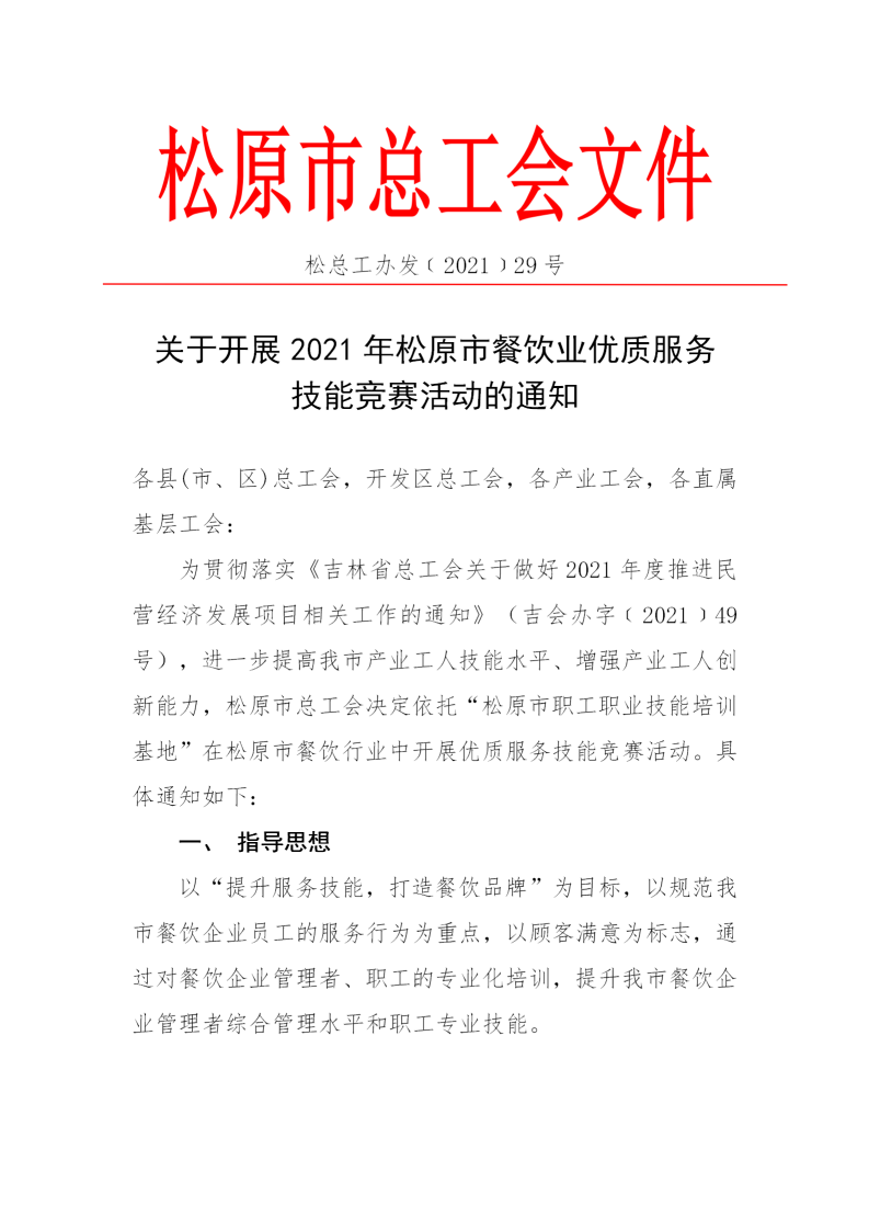 2021年11月8日,按照松原市总工会29号文件相关要求,2021年松原市餐饮业服务技能竞赛在松原市职工职业技能培训基地顺利举行。