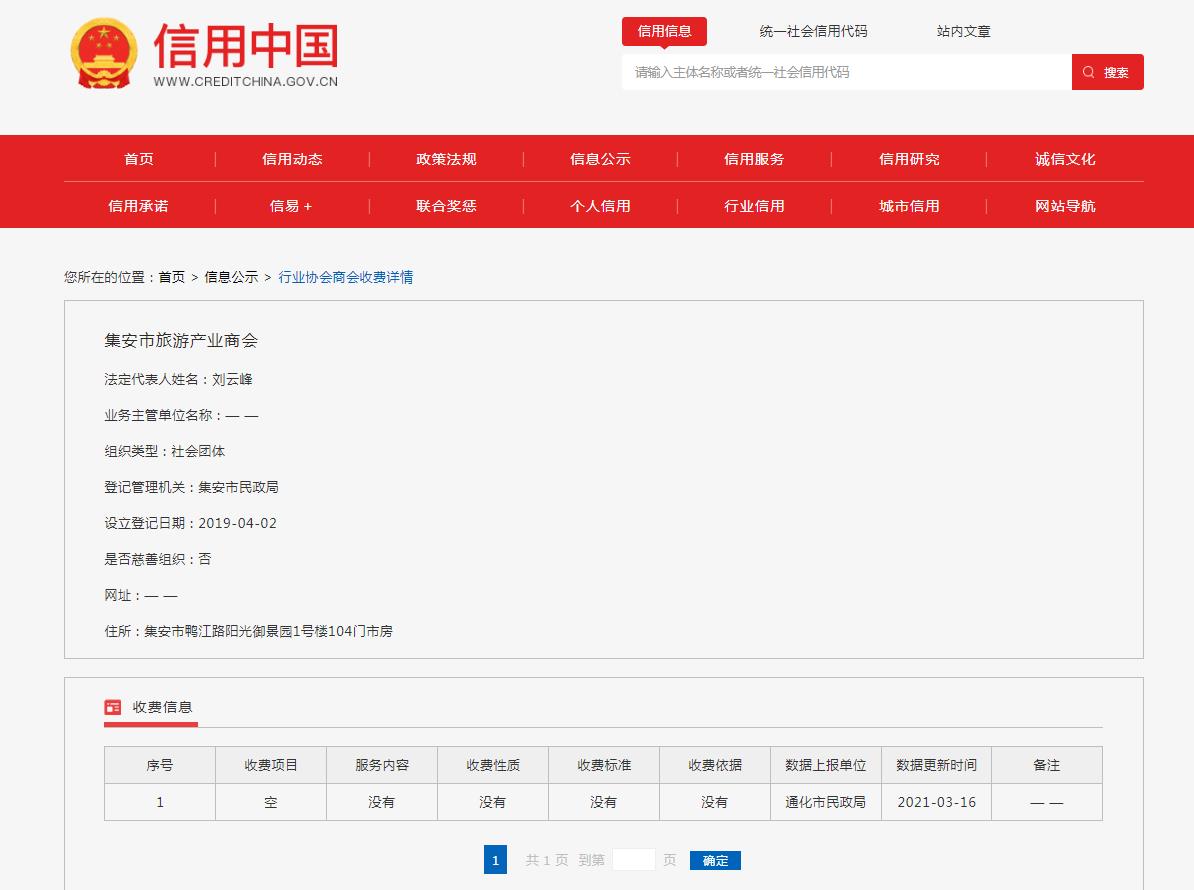 行业协会信息公示