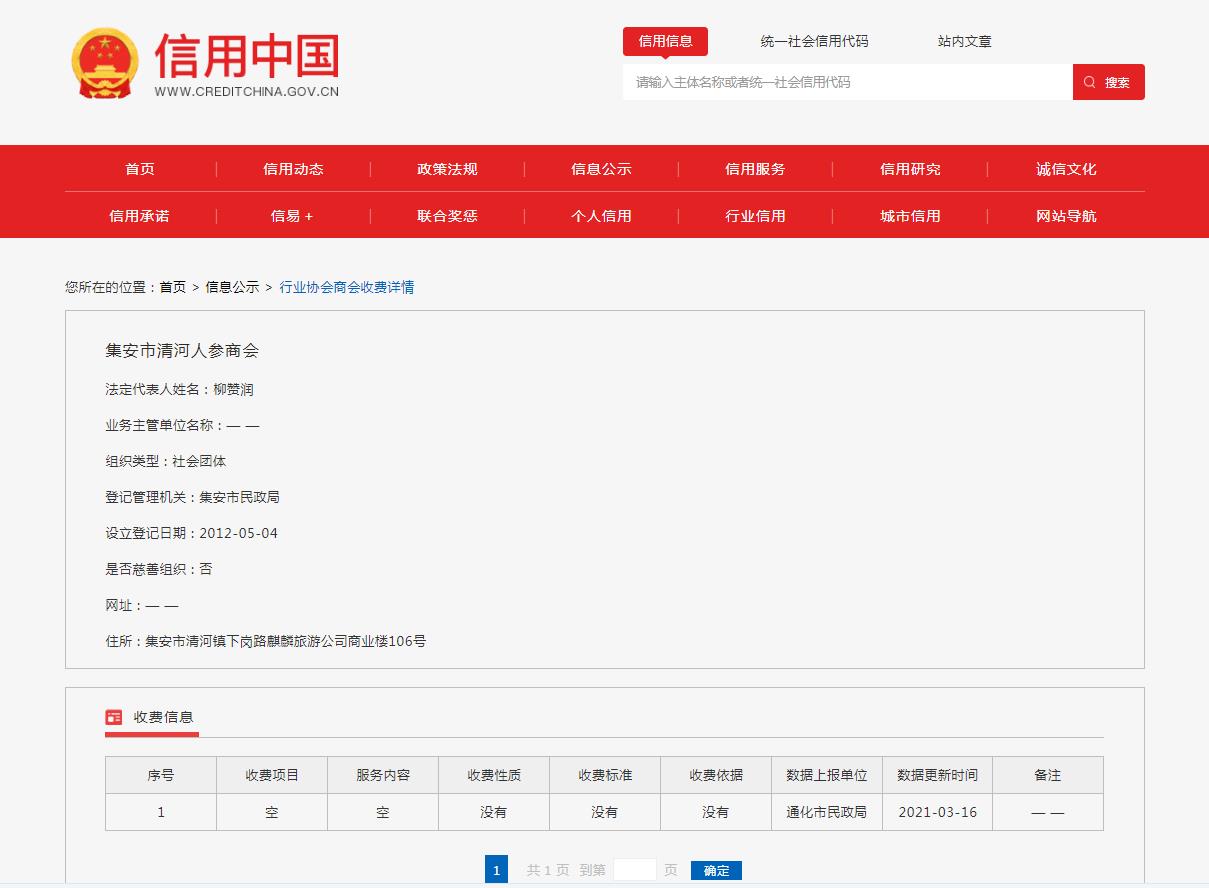 行业协会信息公示