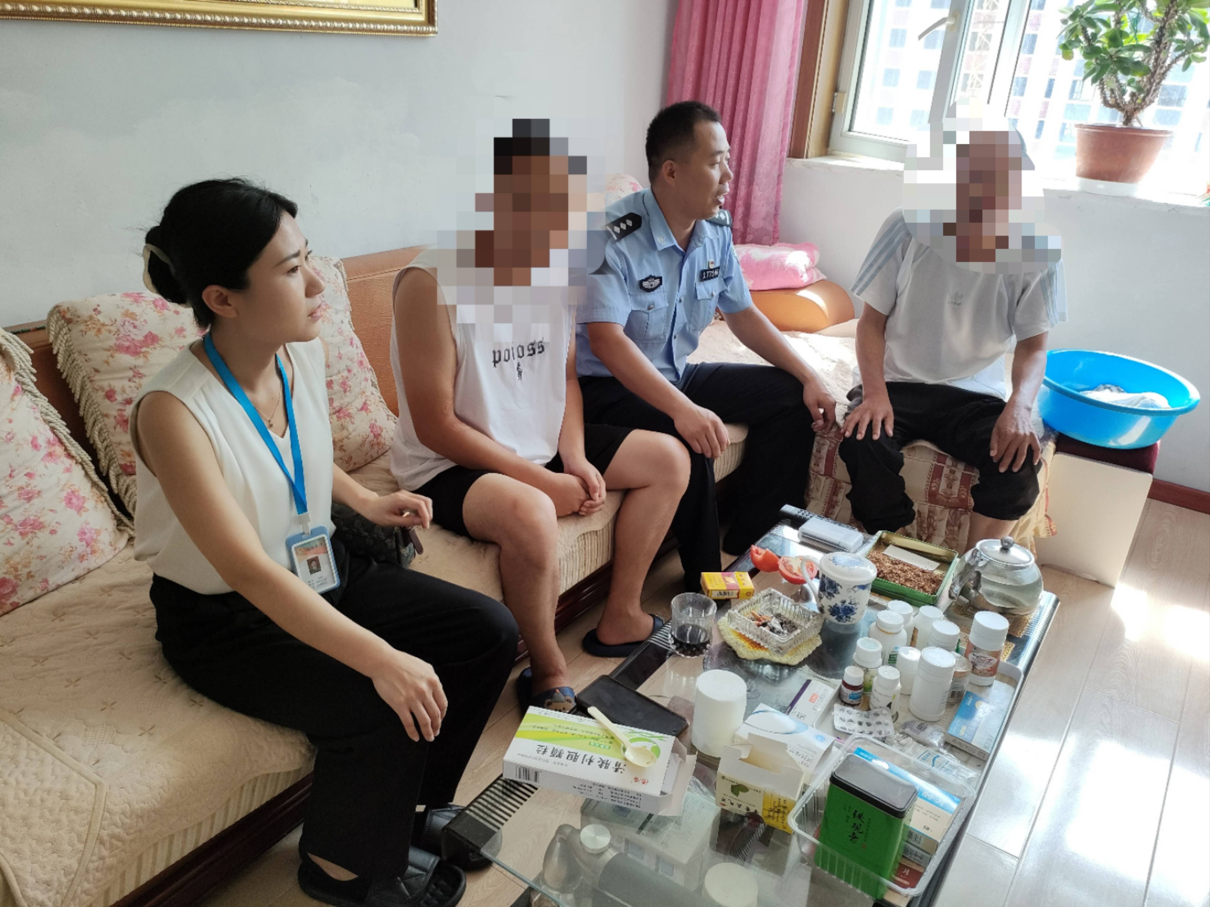 活动中,民警和社区工作人员、网格员来到抑郁症患者家中,根据患者的特点就当下感兴趣的话题入手,对其进行劝导,倾听其内心的想法,让患者敞开心扉。随后,民警和社区工作人员又来到一户刑满释放人员家中,询问其家庭情况,了解其思想动态、生活情况、家庭情况、经济来源等问题,并开导他们不要有思想负担,鼓励其树立起对生活的信心,积极适应社会。